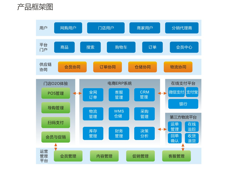 4、打通客户CRM与各大平台,实现与消费者关系营销互动,引入电商ERP与CRM。