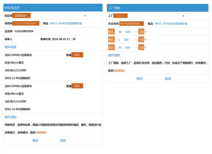 基于互联网技术与用户操作体验,ERP直接与微信公众号和APP集成,使用手机实现企业ERP与供应链的操作与管理功能,如款式资料、手机POS、库存查询、销售统计、智能排产、生产进度、出入库登记、加工厂报数、采购合同、供应商送货等等。手机ERP,拉式到推式管理,智能操作时代。